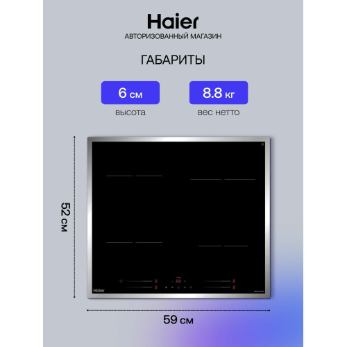 Общие данные: Габариты: 6x59x52 см Габариты ниши для встраивания: -x56x49 см Тип поверхности: стеклокерамика Количество конфорок: 4 индукционные Мощность (левой ближней конфорки): 2000 Вт Размер (левой ближней конфорки): 180 мм Мощность (левой дальней конфорки): 1500 Вт Размер (левой дальней конфорки): 180 мм Мощность (правой ближней конфорки): 1500 Вт Размер (правой ближней конфорки): 160 мм Мощность (правой дальней конфорки): 2000 Вт Размер (правой дальней конфорки): 210 мм Зоны расширения: нет Индикаторы остаточного тепла для каждой конфорки Управление и функции: Дисплей LED Тип управления: электронное Элементы управления: сенсорные кнопки, сенсорные слайдеры Функция Booster Функция Stop + Go Функция поддержания тепла Функция шеф-повара Индикация включения Индикация времени до конца программы Индикация выбранной мощности Таймер: автоматическое отключение, звуковой сигнал Время до отключения: 99 мин Безопасность: Автоматическое отключение Блокировка от детей Защита от проливания Дополнительная информация: Напряжение питания: 220 В Максимальная мощность: 7.4 кВт Частота сети: 50 Гц Кабель питания: без штепселя Длина кабеля питания: 1 м Вес: 8.8 кг