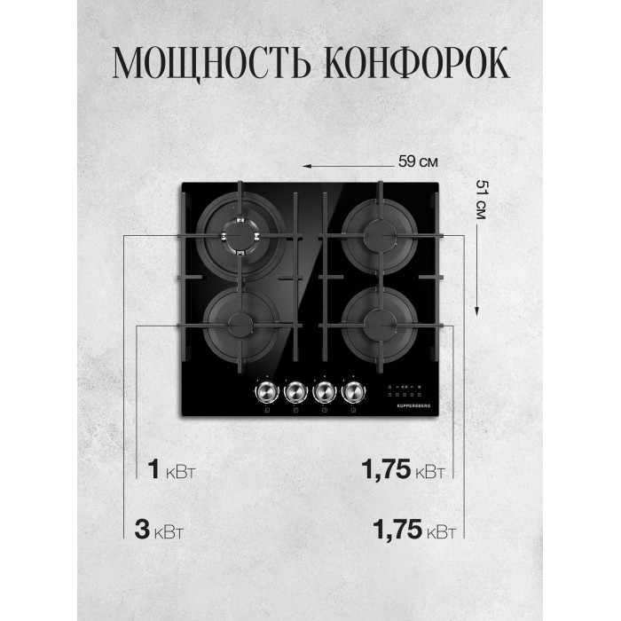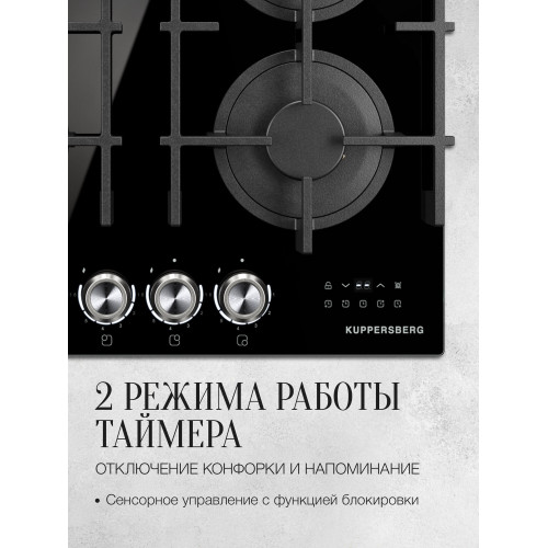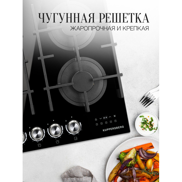 Варочная газовая поверхность Kuppersberg "FG 68", черная, 4 конфорки