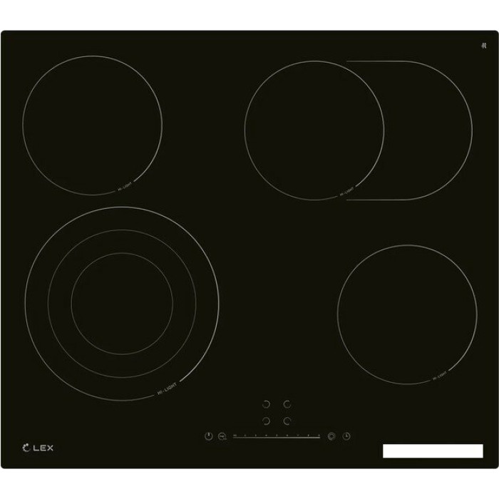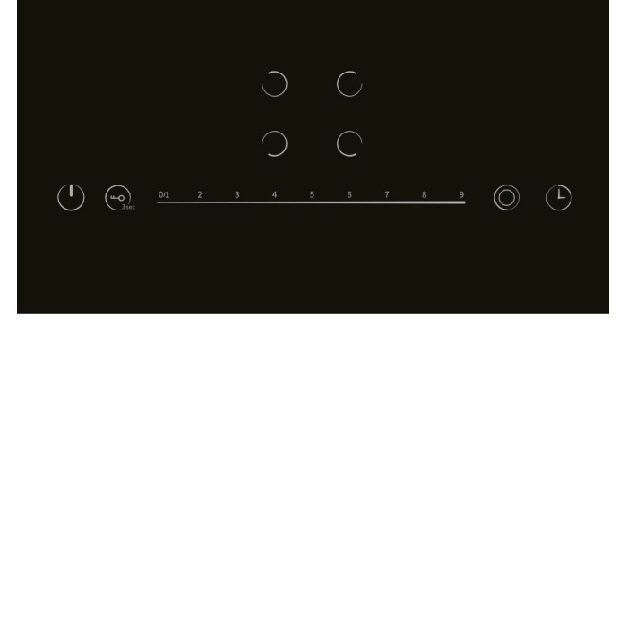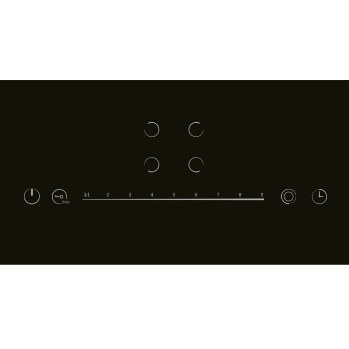 защитное отключение конфорок, индикатор остаточного тепла, кнопка блокировки панели