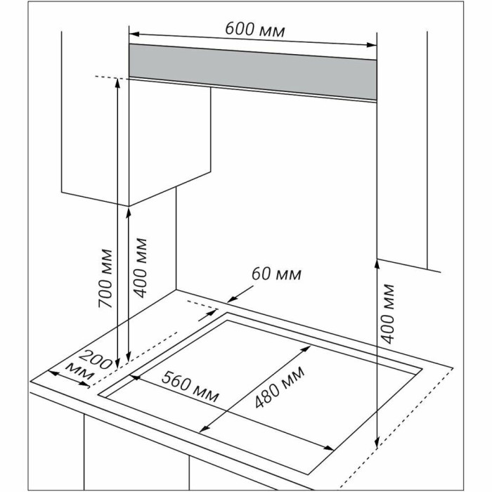 Размеры ниши для встраивания панели, мм
