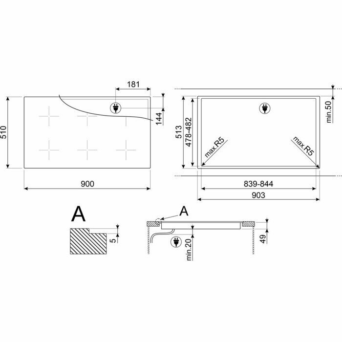 блокировка от детей, в уровень со столешницей, главный выключатель, индикаторы остаточного тепла, сенсор наличия посуды