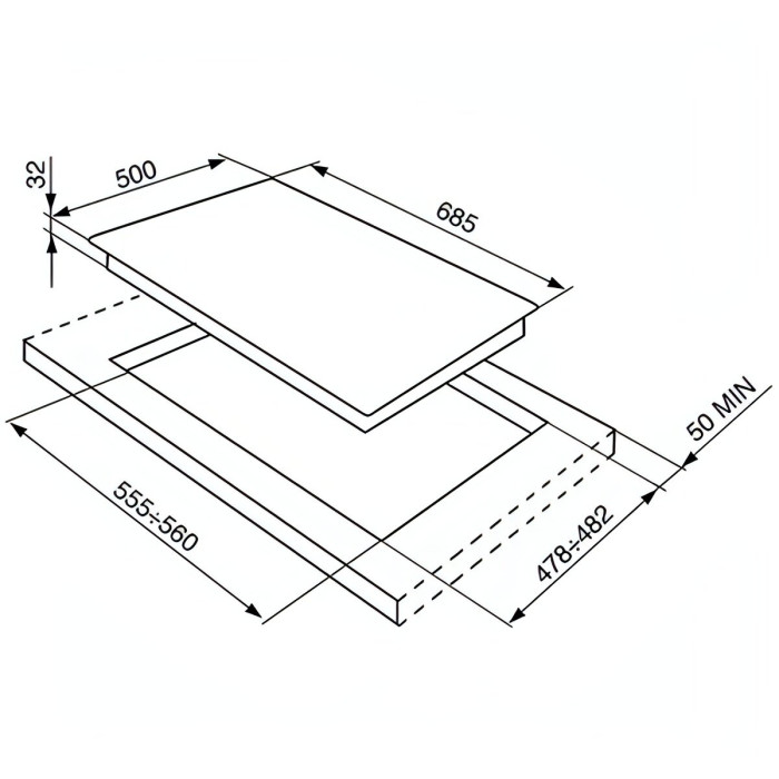 Высота - 12 см. Ширина - 65 см. Глубина - 74.5 см. Вес - 15.1 кг. Конфорка 1: - Мощность 2.25 кВт. Конфорка 2: - Мощность 1.05 кВт. Конфорка 3: - Мощность 5 кВт. Конфорка 4: - Мощность 1.65 кВт. Конфорка 5: - Мощность 1.65 кВт