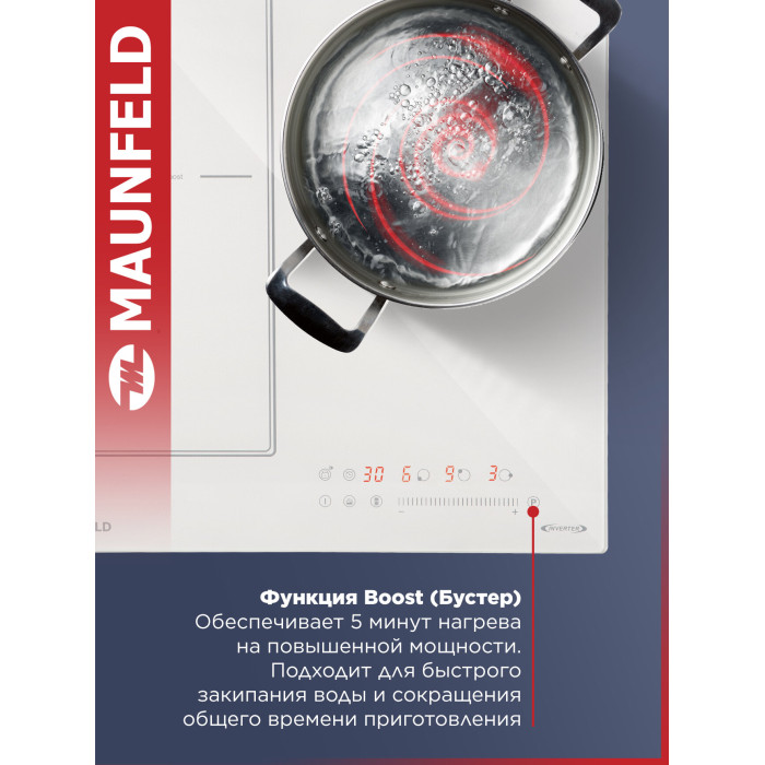 кратковременная пауза, распознавание наличия посуды, распознавание размера посуды, таймер, функция Booster