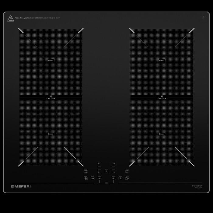 защитное отключение конфорок, индикатор остаточного тепла, кнопка блокировки панели