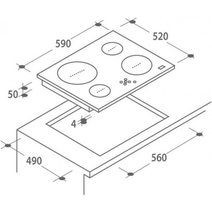 ближняя левая конфорка 15.5 см, дальняя левая конфорка 19 см, Дальняя правая конфорка 19 см, Ближняя правая конфорка 19 см