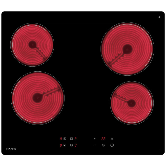 защитное отключение конфорок, индикатор остаточного тепла, кнопка блокировки панели