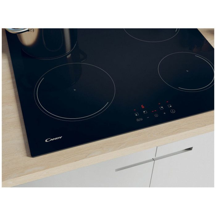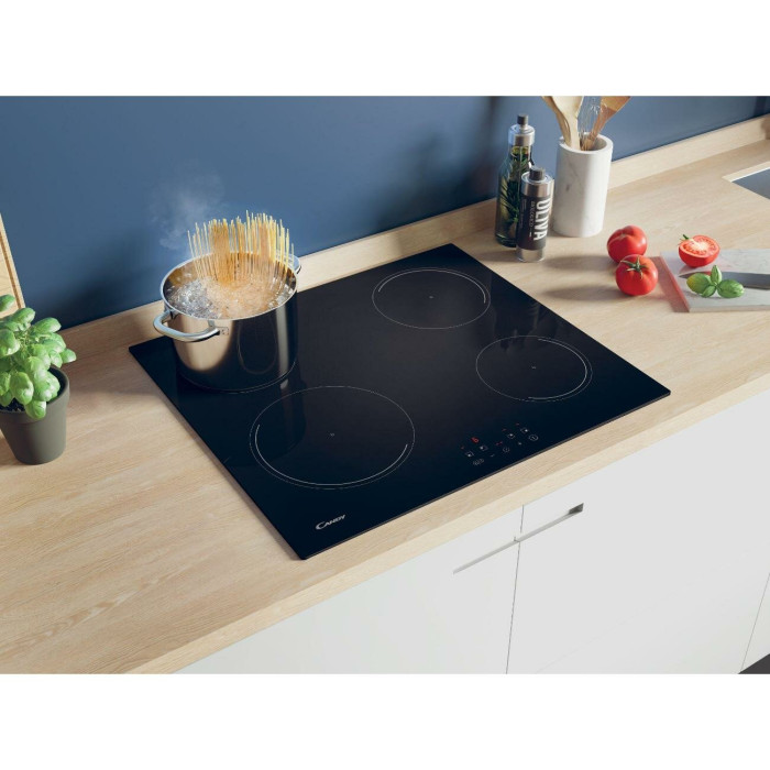 защитное отключение конфорок, индикатор остаточного тепла, кнопка блокировки панели