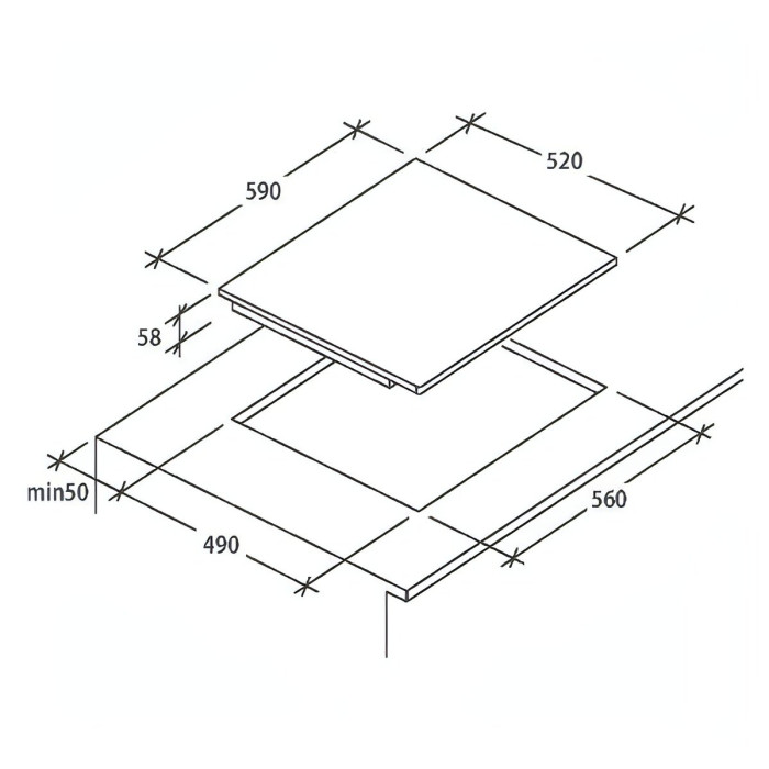 Левая дальняя конфорка - 16 см; Правая дальняя конфорка - 18 см; Левая ближняя конфорка - 21 см; Правая ближняя конфорка - 16 см