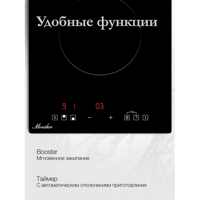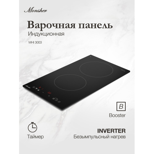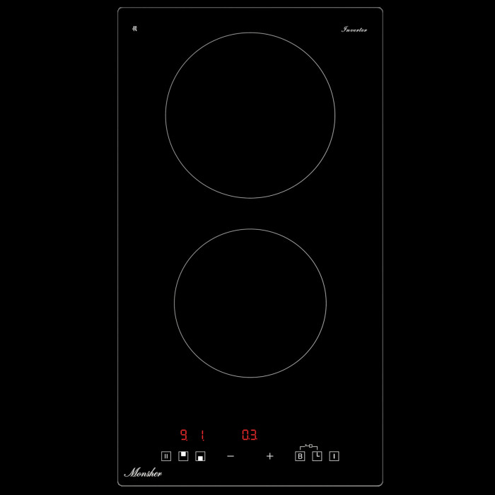 Стеклокерамика KANGER, Длина сетевого шнура - 155 см, Вилка, Мощность конфорок, кВт: передняя - 1,3 кВт/1,5 кВт, задняя - 1,8 кВт / 2,0 кВт Диаметр зон, мм. задняя - 180 мм, передняя - 160 мм, Inverter, Таймер