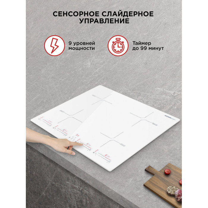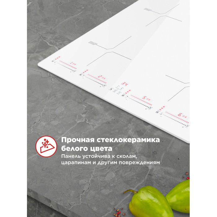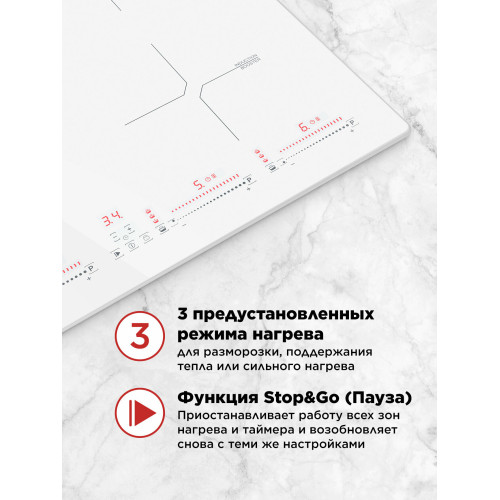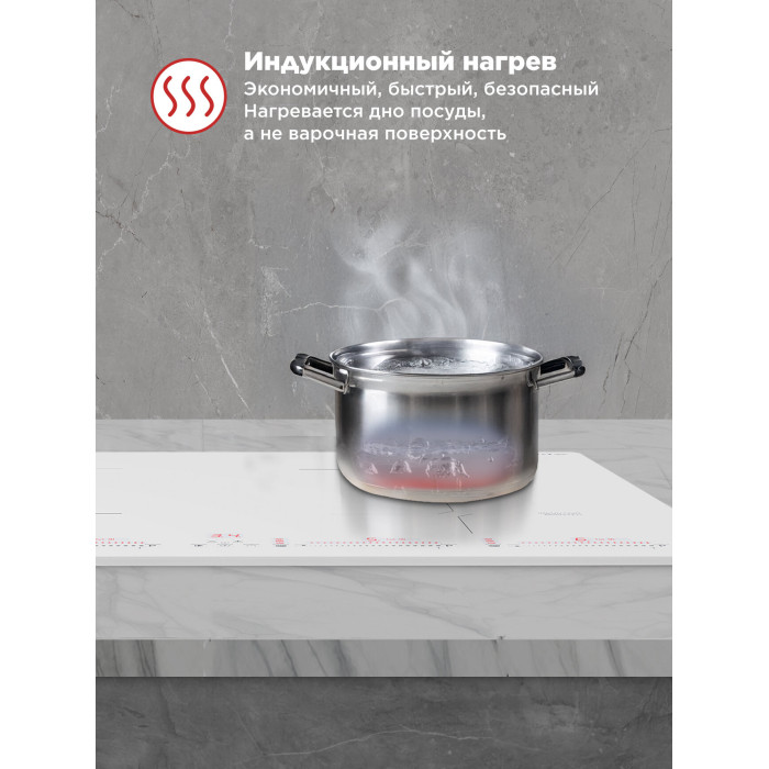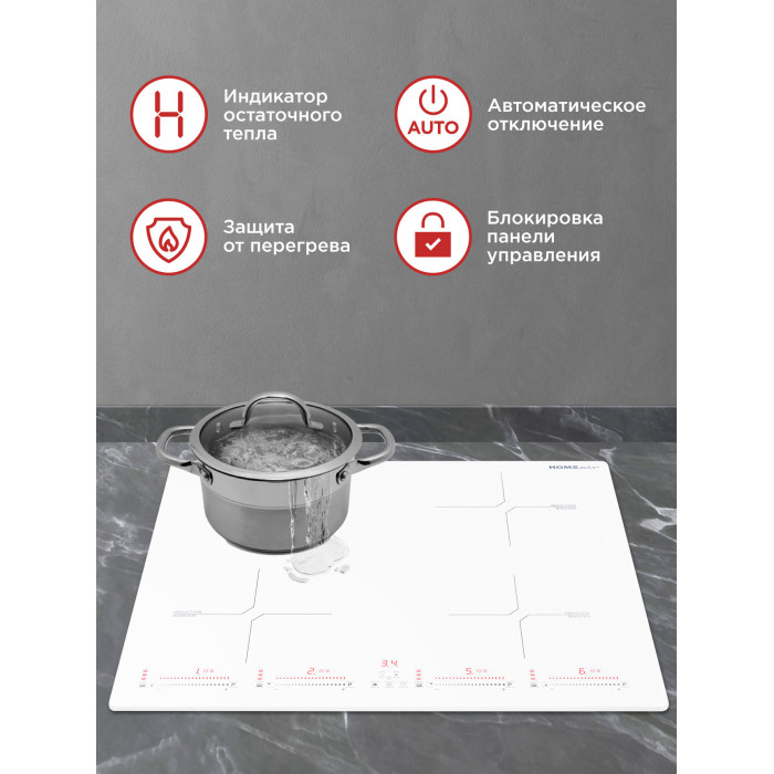 защитное отключение конфорок, индикатор остаточного тепла