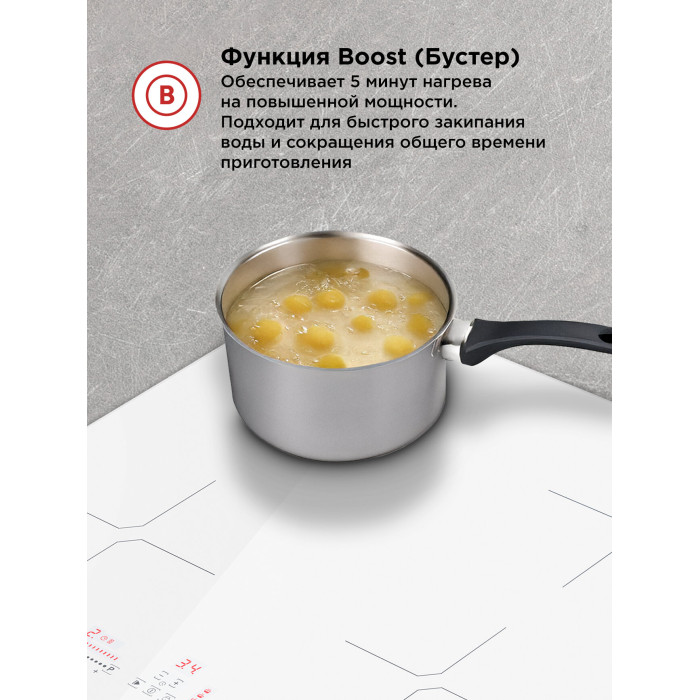 кратковременная пауза, поддержание тепла, распознавание наличия посуды, распознавание размера посуды, функция Booster