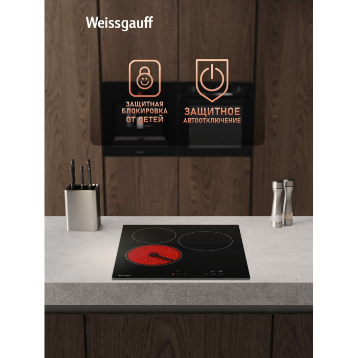 индикатор остаточного тепла, кнопка блокировки панели