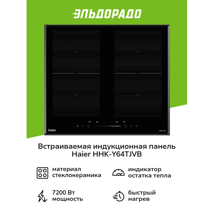 Сенсорное управление; Самодиагностика неисправности; Расширенная зона на 2 конфорки; Автоматический выбор зоны нагрева; Отключение при проливе жидкости; Защита от детей; Индикация выбранной мощности; В комплекте: сетевой кабель