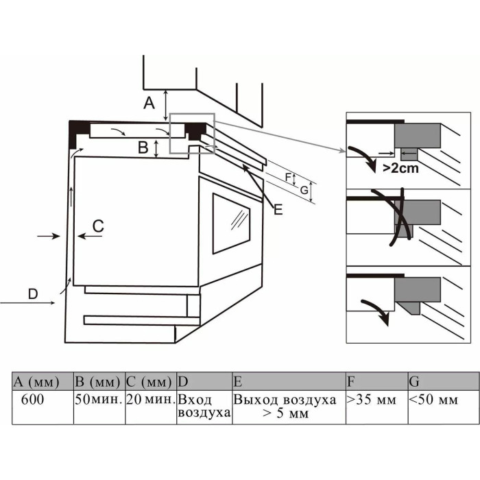 Размеры ниши для встраивания панели, мм