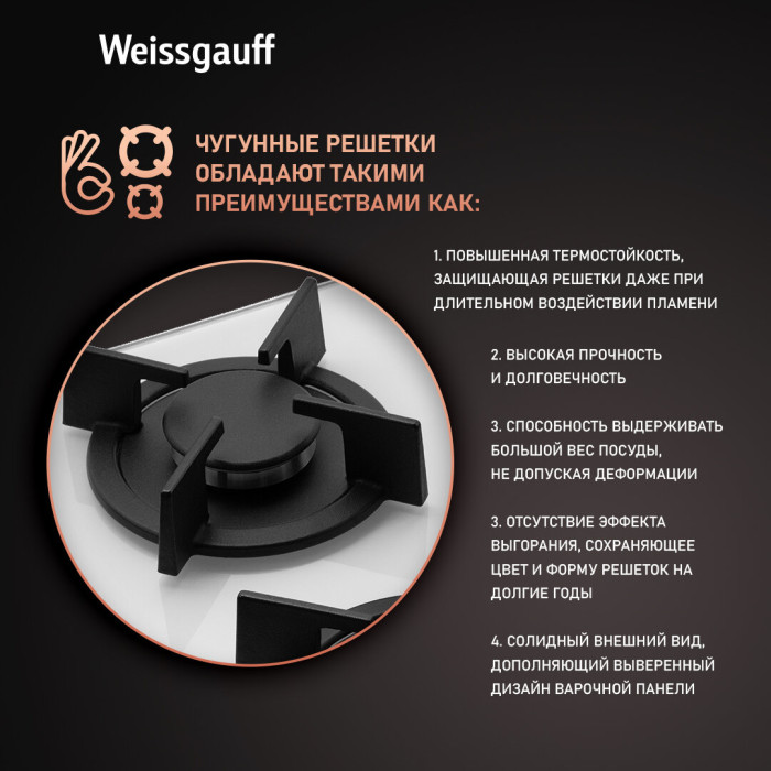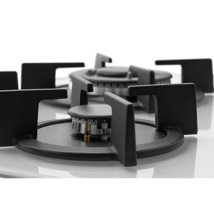 Панель выполнена из закаленного стекла; Материал решёток: высококачественный чугун; Покрытие Nano Glass; Рукоятки Hi-Tech; Автоматический электроподжиг; Wok-конфорка; Газ-контроль