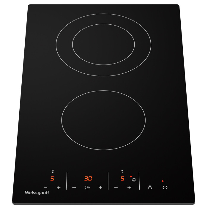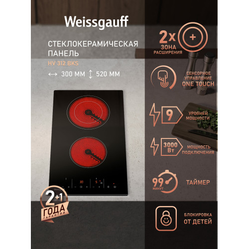защитное отключение конфорок, индикатор остаточного тепла, кнопка блокировки панели