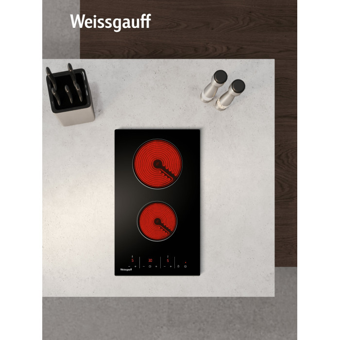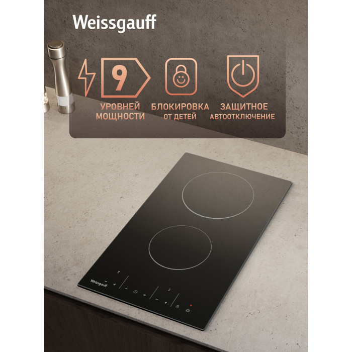 защитное отключение конфорок, индикатор остаточного тепла, кнопка блокировки панели