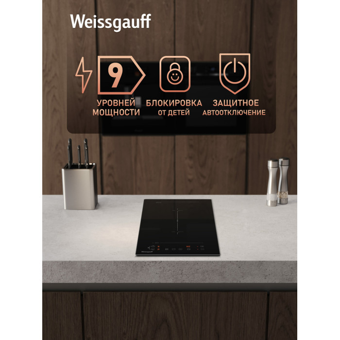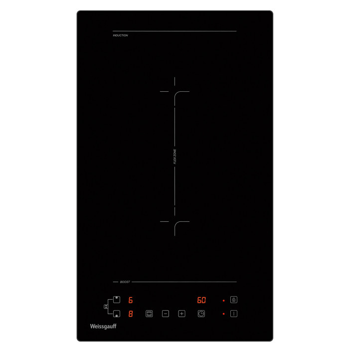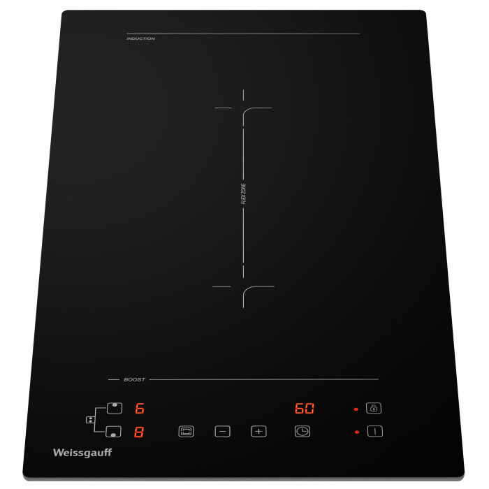 защитное отключение конфорок, индикатор остаточного тепла, кнопка блокировки панели