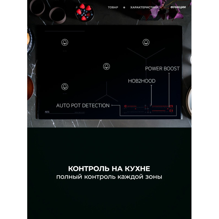 автоматика закипания, кратковременная пауза, распознавание наличия посуды, Быстрый нагрев, Индукционный мост