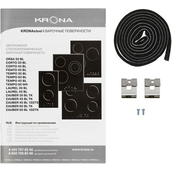 защитное отключение конфорок, индикатор остаточного тепла, кнопка блокировки панели
