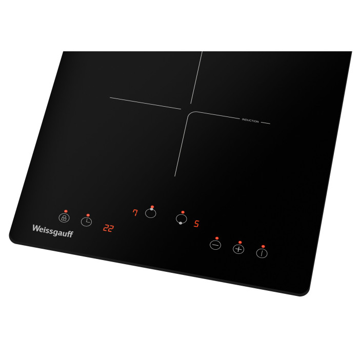 защитное отключение конфорок, индикатор остаточного тепла, кнопка блокировки панели