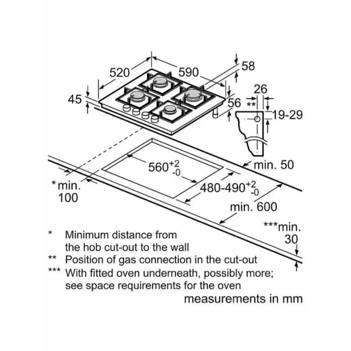 Размеры ниши для встраивания панели, мм