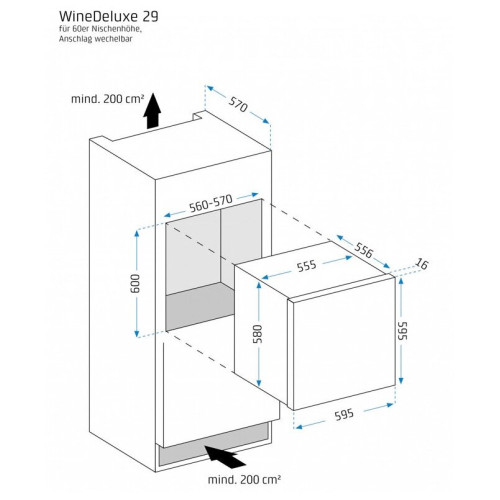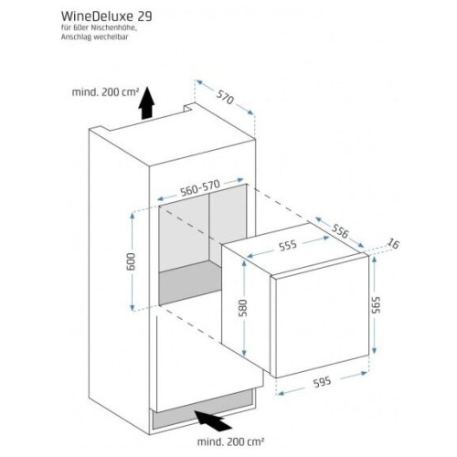 встраиваемый винный шкаф, 59.5x57.2x59.5см