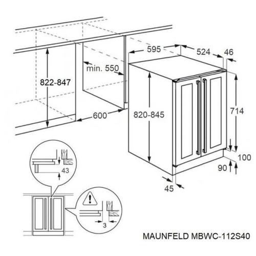 встраиваемый винный шкаф, 112л, 2-камерный, 59.5x61.3x82см, чёрный