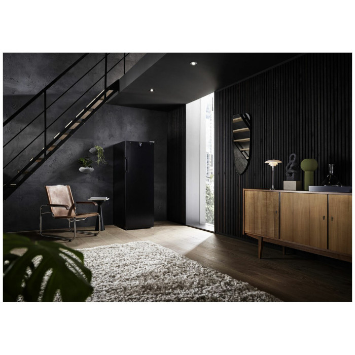 Общие данные: Размеры: высота: 148,4 см ширина: 59,7 см глубина: 76,3 см Общий объем: 357 л Полезный объем: 322 л Максимальное количество бутылок: 166 Тип управления: электронный Класс энергопотребления: A Климатический класс: SN-T (от 10С до 43С) Годовое потребление энергии: 84 кВтч/год Цвет: черный Температурный режим: от 5 C до 20 C Количество температурных зон: 1 Тип системы охлаждения: компрессор Винное отделение: Выдвижные деревянные полки Количество полок: 5 Борта с регулировкой по высоте Контроль