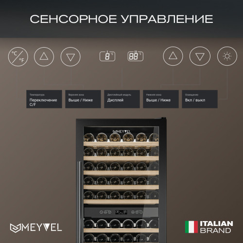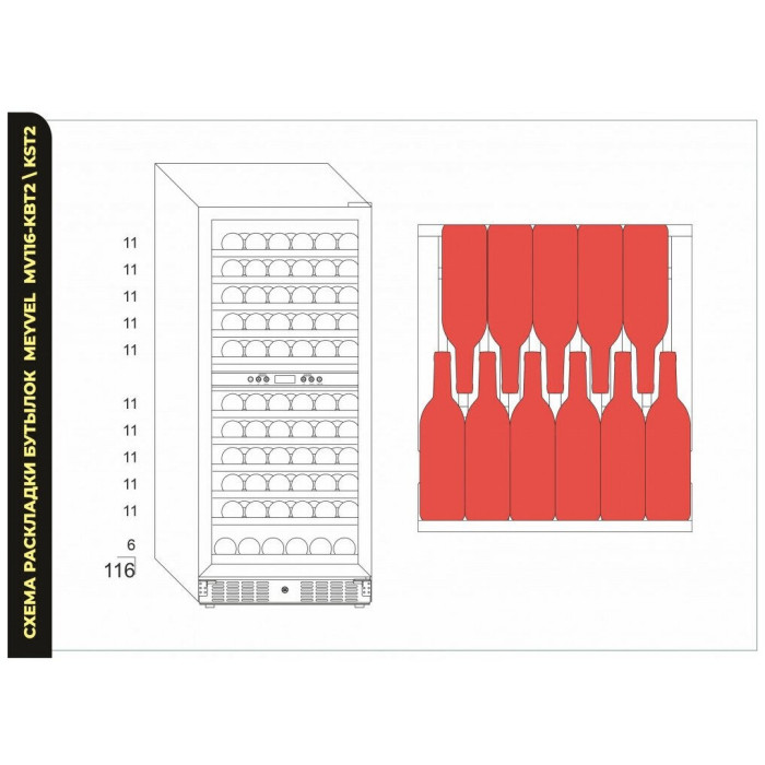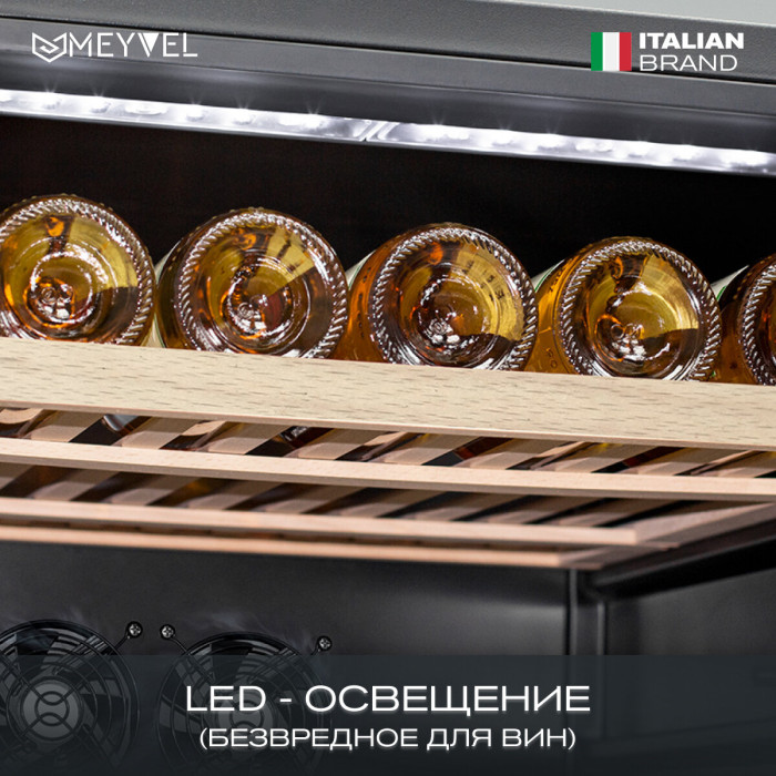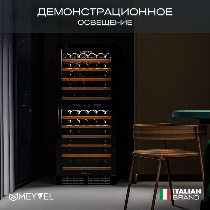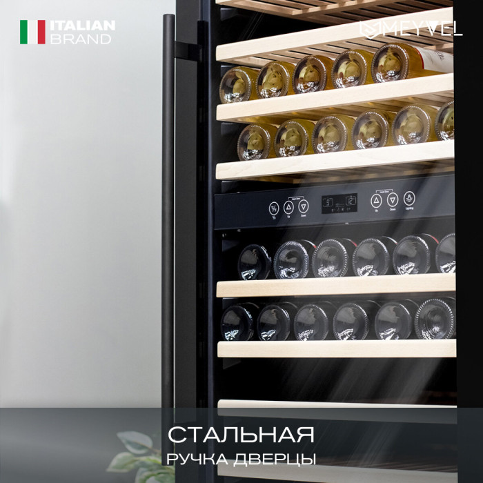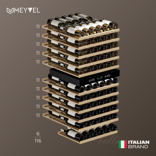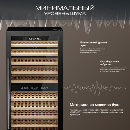 Модель MV116-KBT2 имеет привлекательный внешний вид, сочетающий в себе неподвластное времени очарование натуральных материалов с высокотехнологичными системами сохранения продуктов. Винный холодильник Meyvel MV116-KBT2 оснащен дверью с защитой от ультрафиолетовых лучей и отлично подойдет для хранения и созревания различных сортов вин. Динамическая система охлаждения обеспечивает оптимальную температуру для вина и сохраняет необходимую влажность внутри камеры.