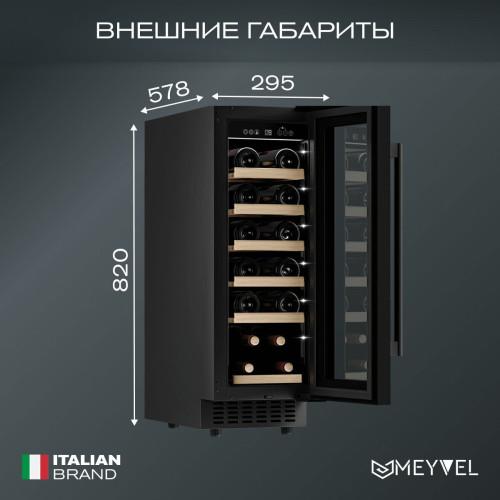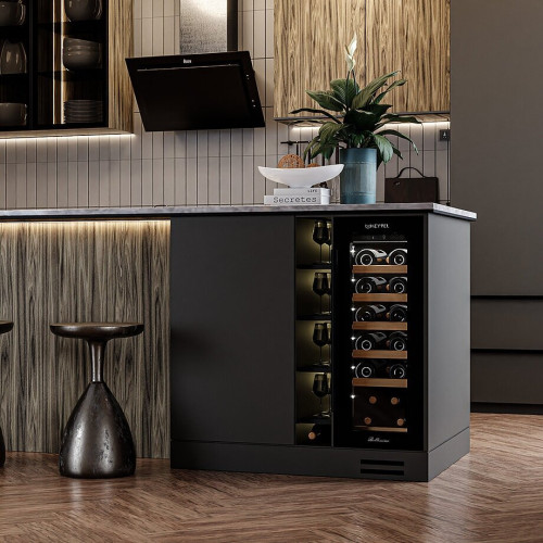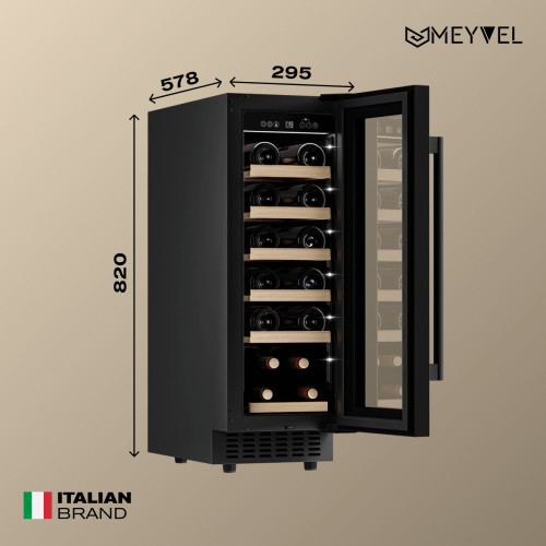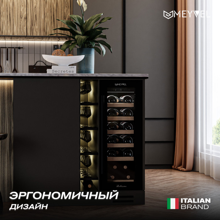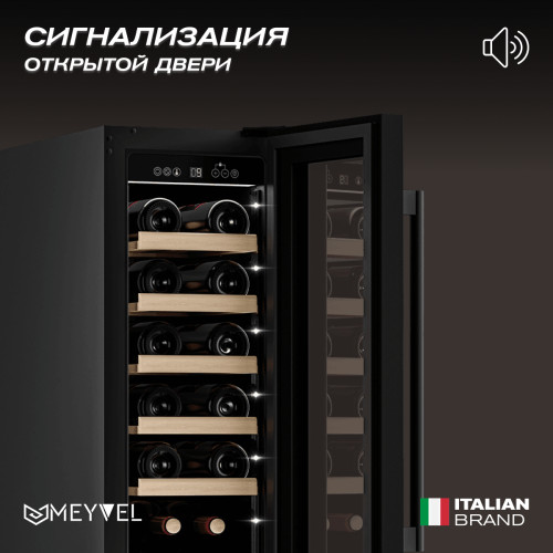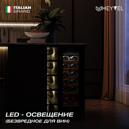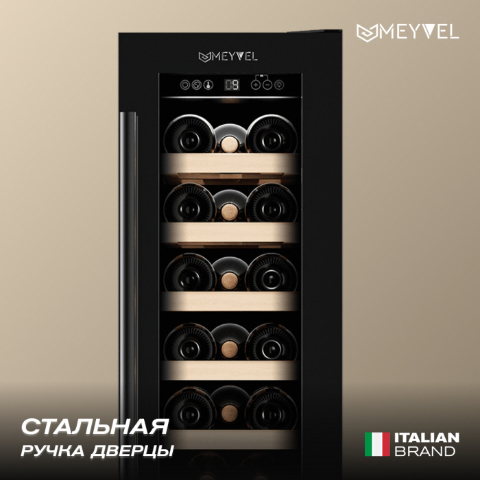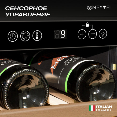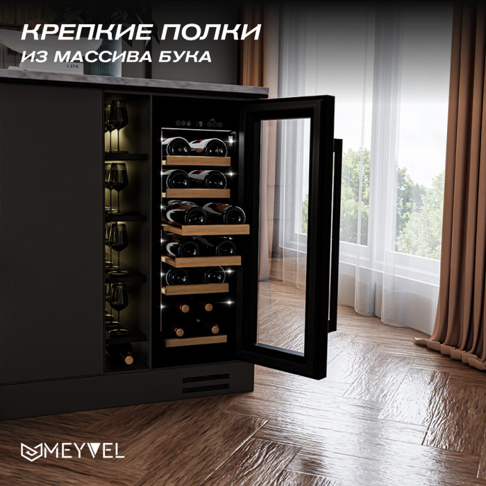 Модель MV19-KBT1 имеет привлекательный внешний вид, сочетающий в себе неподвластное времени очарование натуральных материалов с высокотехнологичными системами сохранения продуктов. Винный холодильник Meyvel MV19-KBT1 оснащен дверью с защитой от ультрафиолетовых лучей и отлично подойдет для хранения и созревания различных сортов вин. Динамическая система охлаждения обеспечивает оптимальную температуру для вина и сохраняет необходимую влажность внутри камеры.