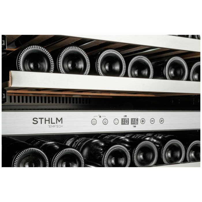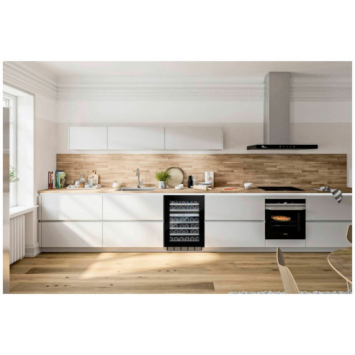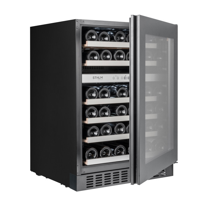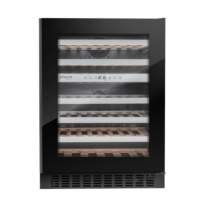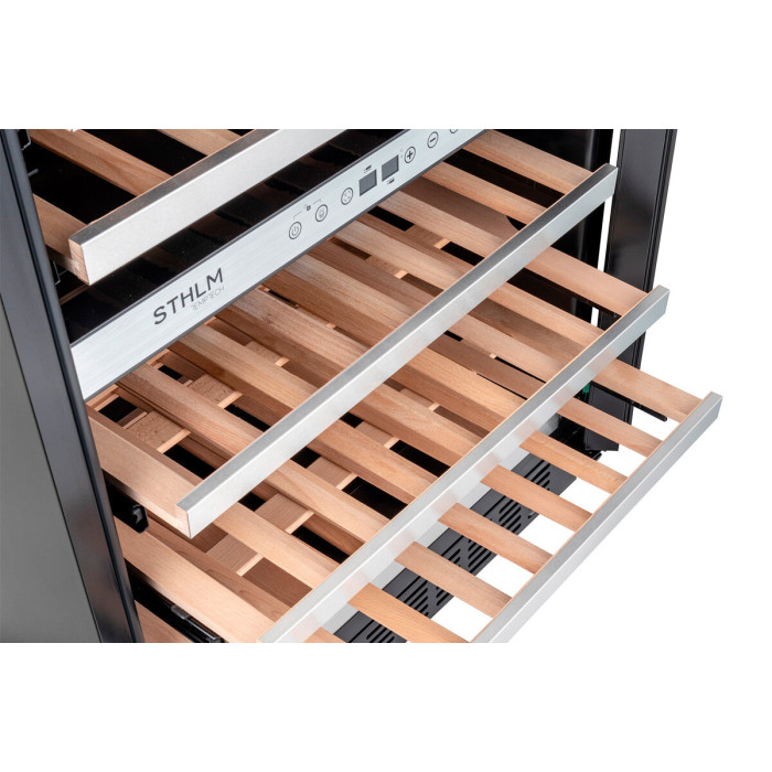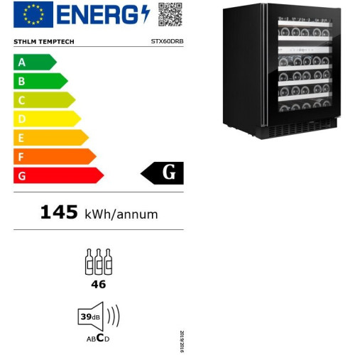 Этот винный холодильник из серии STOCKHOLM создан для бесшовной интеграции в вашу кухню. Современный дизайн с фасадом из черного стекла, деталями полок из нержавеющей стали и встроенной ручкой в дверце делает винный шкаф изящным и стильным дополнением к вашей кухне. Модель STX60DRB имеет две температурные зоны (5-12 °C и 12-20°C), которые можно регулировать отдельно, что означает, что вы всегда можете иметь правильную температуру подачи вина. Выдвижные полки из необработанного бука с деталями из нержавеющей стали. Емкость до 46 бутылок, белая светодиодная подсветка, панель управления с дисплеем для настройки освещения и температуры и УФ-обработанное стекло в двери. С ровной и стабильной температурой, правильной влажностью и низкой вибрацией, сохранит вина к вашему наилучшему возможному пути! Винный шкаф вентилируется спереди. Прикрепите вентиляционное отверстие к вытяжке от плиты и это даст хороший интегрированный смысл встройки, в котором видна только дверь. Количество зон: две Температурный режим: +5.+20 °C (верх. +5.+12/нижн. +12.+20) Количество бутылок: 46 шт. Условие эксплуатации: +16.+32 °C Возможность встроить: есть Хладагент: R600a (29 гр.) Охлаждение: динамическое Вид охлаждения: компрессорное Дверь: в черной раме со встроенной ручкой, стеклопакет с защитой от УФ Полки: 6 шт, деревянных, выдвижных Подсветка: есть, LED (белая) Объем: 145 л. Внутренняя влажность: 30-60 % (ванночка с водой, в комплекте нет) Потребляемая мощность: 100 Вт Энергопотребление в сутки: 0,397 кВт Энергетический класс: G (по таблице классов с 2021г) Номинальное напряжение: 220 В, 50 Гц Корпус: черный, металлический Разморозка: автоматическая Угольный фильтр: есть Зимний режим: нет Перевеска двери: есть Замок: нет Управление: сенсорное Уровень шума: 39 дБ Размеры (ШхГхВ): 595х570х813 мм Масса (без упк./в упк.): 46/50 кг Размеры ниши (ШхГхВ): 605х590х820 мм Размер в упаковке (ШхГхВ): 650х650х880 мм
