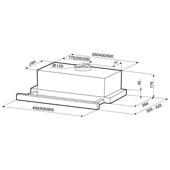 Вытяжка встраиваемо-выдвижная Kamilla 450 нерж.сталь