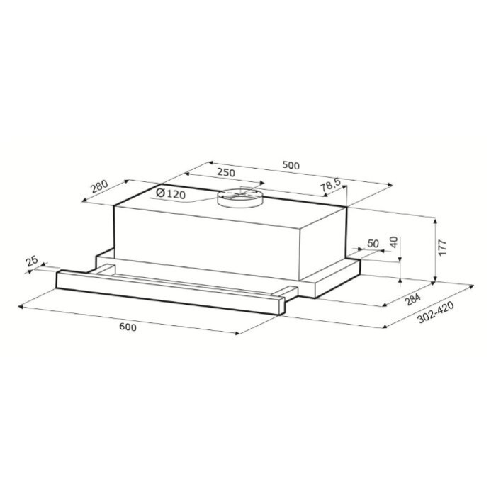 Вытяжка встраиваемо-выдвижная Kamilla 600 glass черный