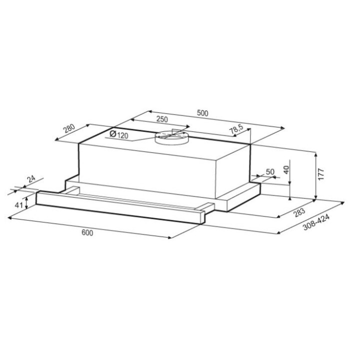 Вытяжка встраиваемо-выдвижная Kamilla retro 600 сл.кость