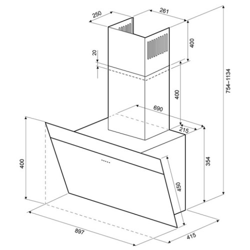 Вытяжка каминная наклонная Kristen 900 S белый/нерж.сталь