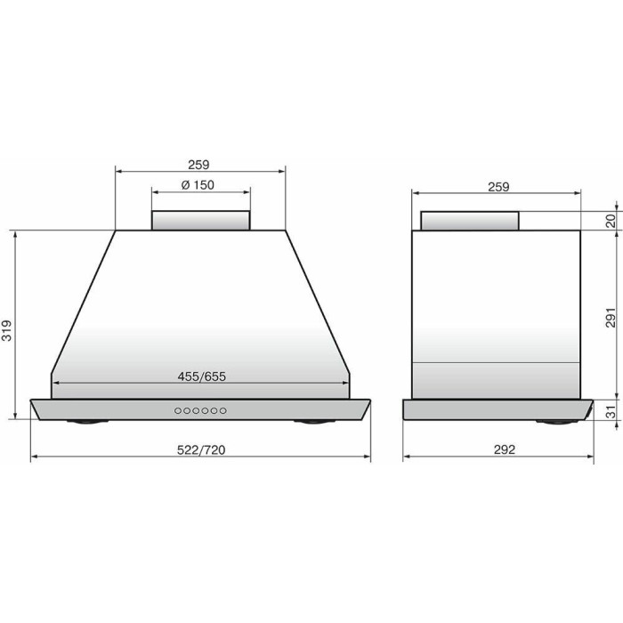 Кухонная вытяжка Врезной блок 72Н-1000-Э4Д нерж ELIKOR