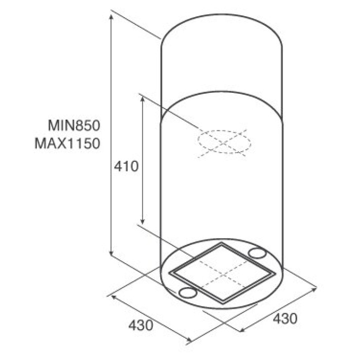 Вытяжка PIPE ISLAND BL/A/43 / Декоративный дизайн, 43 см, 290 Вт, кнопочное управление, 1200 куб. м. , черная