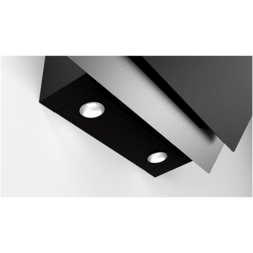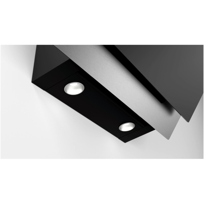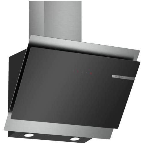 Serie 6, наклонная вытяжка, 60см, черная, 1 мотор, производительность до 750 м3/ч, режим отвода/циркуляции (Для работы в режиме циркуляции требуется установкаспециального комплекта (дополнительная принадлежность). Возможность работы в режиме отвода или циркуляциивоздуха-Сенсорное управление TouchControl-Электронное управление, LED-освещение-3 ступени мощности + интенсивный режим-Режим остаточный ход-Крышка фильтра из стекла-Металлический жироулавливающий фильтр пригодный длямытья в посудомоечной машине.