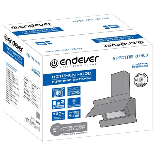 Вытяжка кухонная Spectre KH-40B, цвет черный, 190Вт, 3 скоростных режима, ширина встраивания 60 см, технология управления жестами, 1 шт/уп