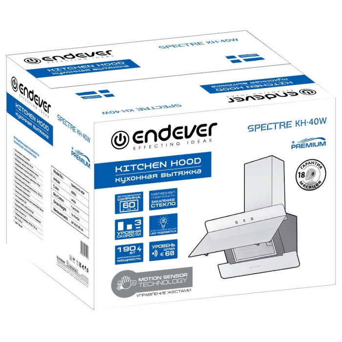 Вытяжка кухонная Spectre KH-40W, цвет белый, 190Вт, 3 скоростных режима, ширина встраивания 60 см, технология управления жестами, 1 шт/уп