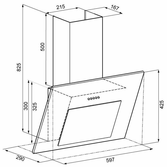 Вытяжка каминная наклонная Freya 600 PB черный (металл/стекло)