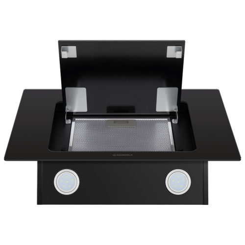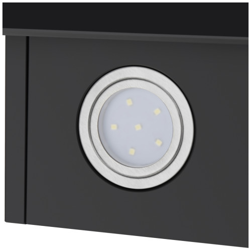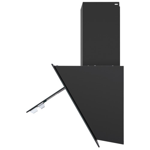 Мощная наклонная вытяжка шириной 50 см с корпусом из нержавеющей стали и фасадом полностью из закаленного стекла. Сенсорное управление для выбора скорости работы и активирования таймера.