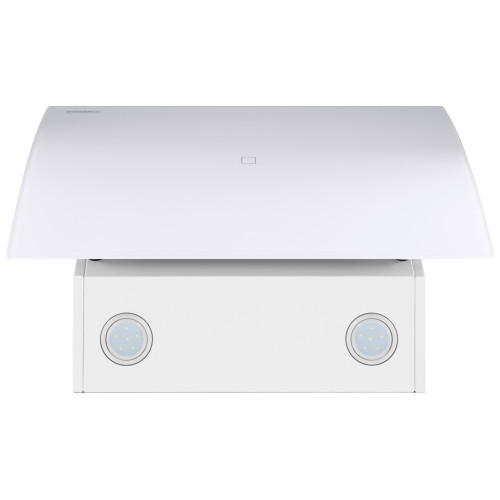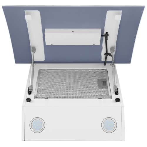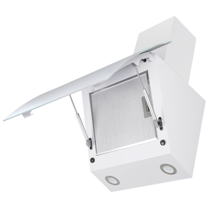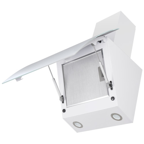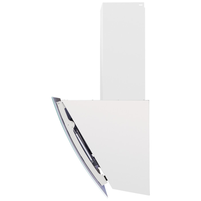Стильная наклонная вытяжка шириной 50 см. Дизайнерский фасад выгнутой формы выполнен полностью из закаленного стекла. Сенсорное управление для выбора режима работы и установки таймера.