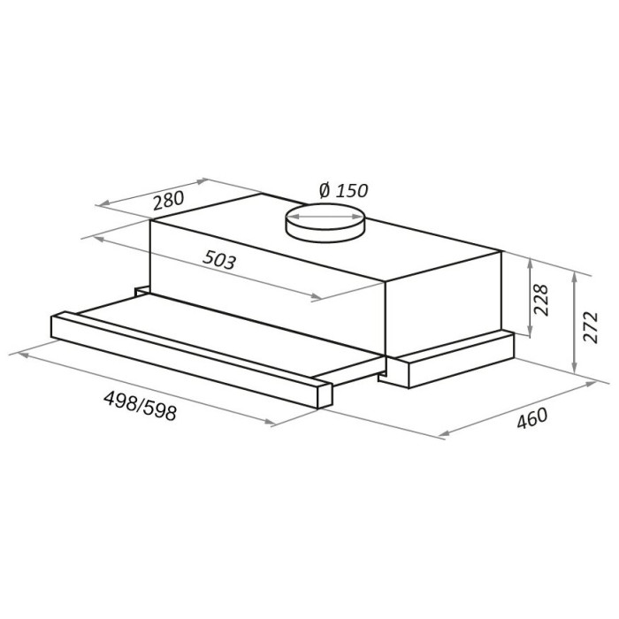 Выдвижная, встраивается в навесной шкафчик отвод / циркуляция макс. производительность 1000 куб. м/ч ширина для установки 50 см мощность 162 вт мощность двигателя 160 вт электронное управление тихий двигатель.