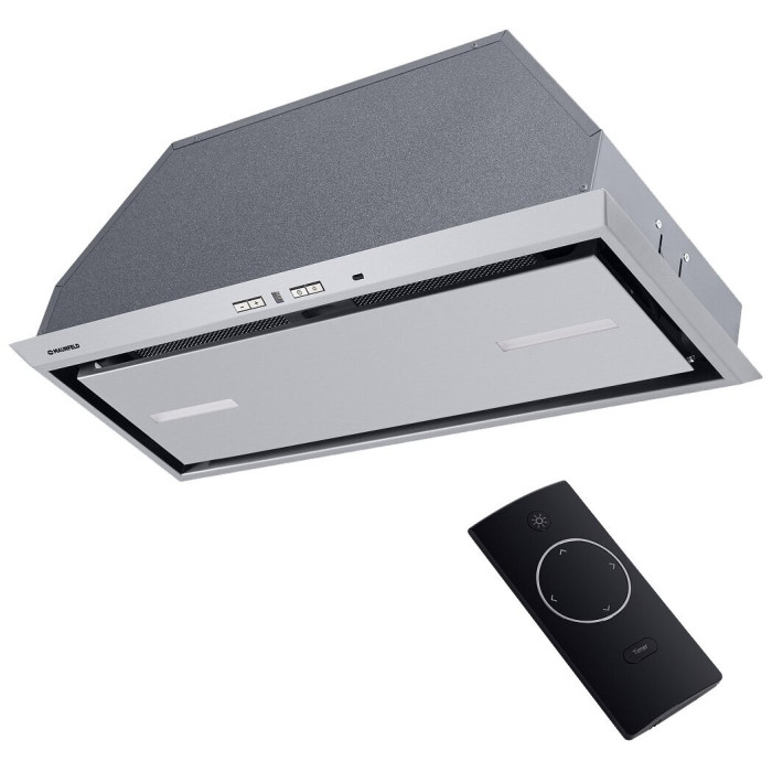 Полновстраиваемая вытяжка с корпусом из высокопрочной стали, пульт ДУ в комплекте.