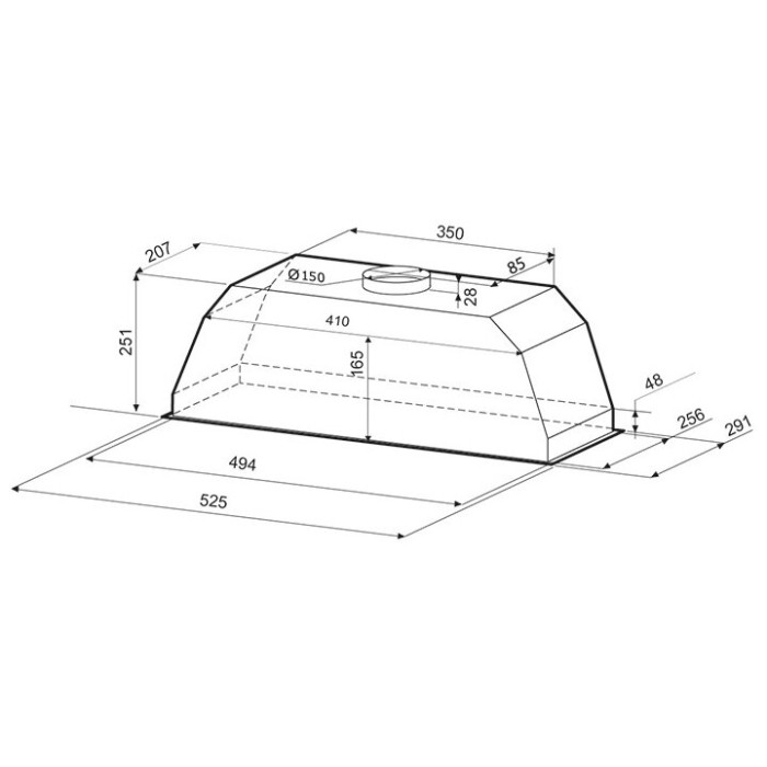 производительность (свободный выход) 633 м3/ч; высота установки над электрическими варочными поверхностями 50 см; высота установки над газовыми варочными поверхностями 65 см; угольный фильтр приобретается отдельно тип TK (2 шт.); минимальный уровень шума 38 дБ; рекомендованная площадь кухни 11 м2; количество ламп освещения: 2; мощность каждой лампы: 1.5 Вт