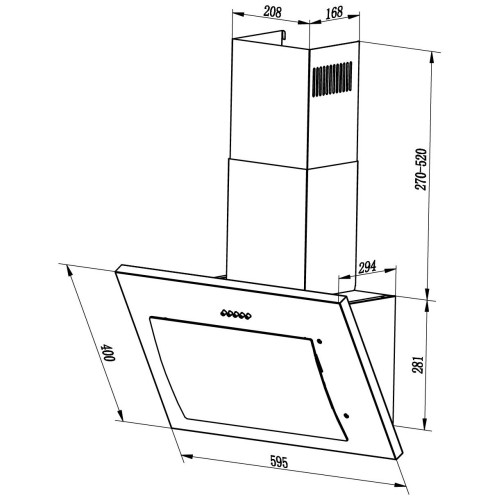 наклонная, монтируется к стене, отвод / циркуляция, макс. производительность 850 куб. м/ч, ширина для установки 60 см, мощность 120 Вт, электронное управление, тихий двигатель, дисплей, периметриальное всасывание, немаркая поверхность
