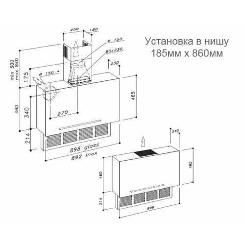 Вытяжка Sirius UPRIGHT TC 90 см НЕРЖ-ЧЁРНОЕ СТЕКЛО