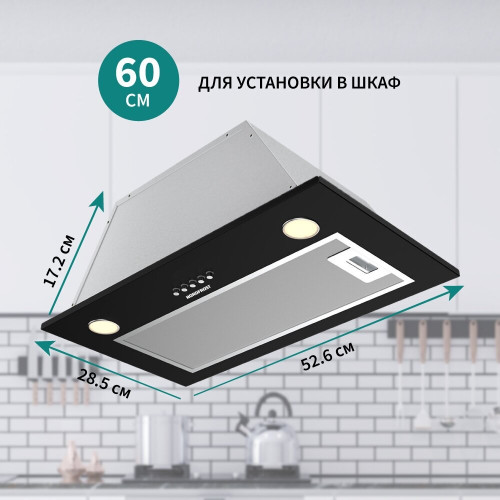 форм-фактор: встраиваемая, ширина: 28.50 см, глубина: 28.50 см, режимы работы: отвод / циркуляция, место встраивания: в шкаф, максимальная производительность: 550 м³/час, тип установки: пристенная, фильтр: жировой, тип управления: механическое, тип освещения: светодиодное, максимальный уровень шума: 56 дБ, ширина встраивания: 46.60 см, диаметр патрубка воздуховода: 120 мм, мощность двигателя: 140 Вт, тип встраивания в шкаф: полновстраиваемая, потребляемая мощность: 144 Вт